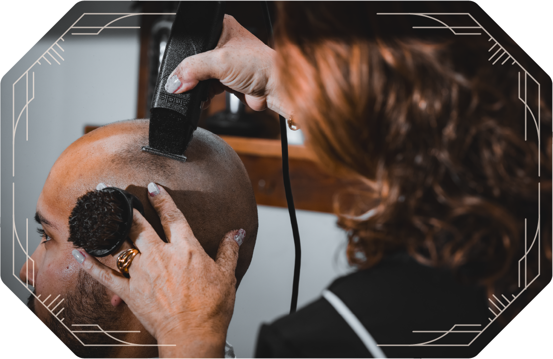 A smooth, comfortable head shave for a sleek, polished look, expertly crafted for your unique head shape.